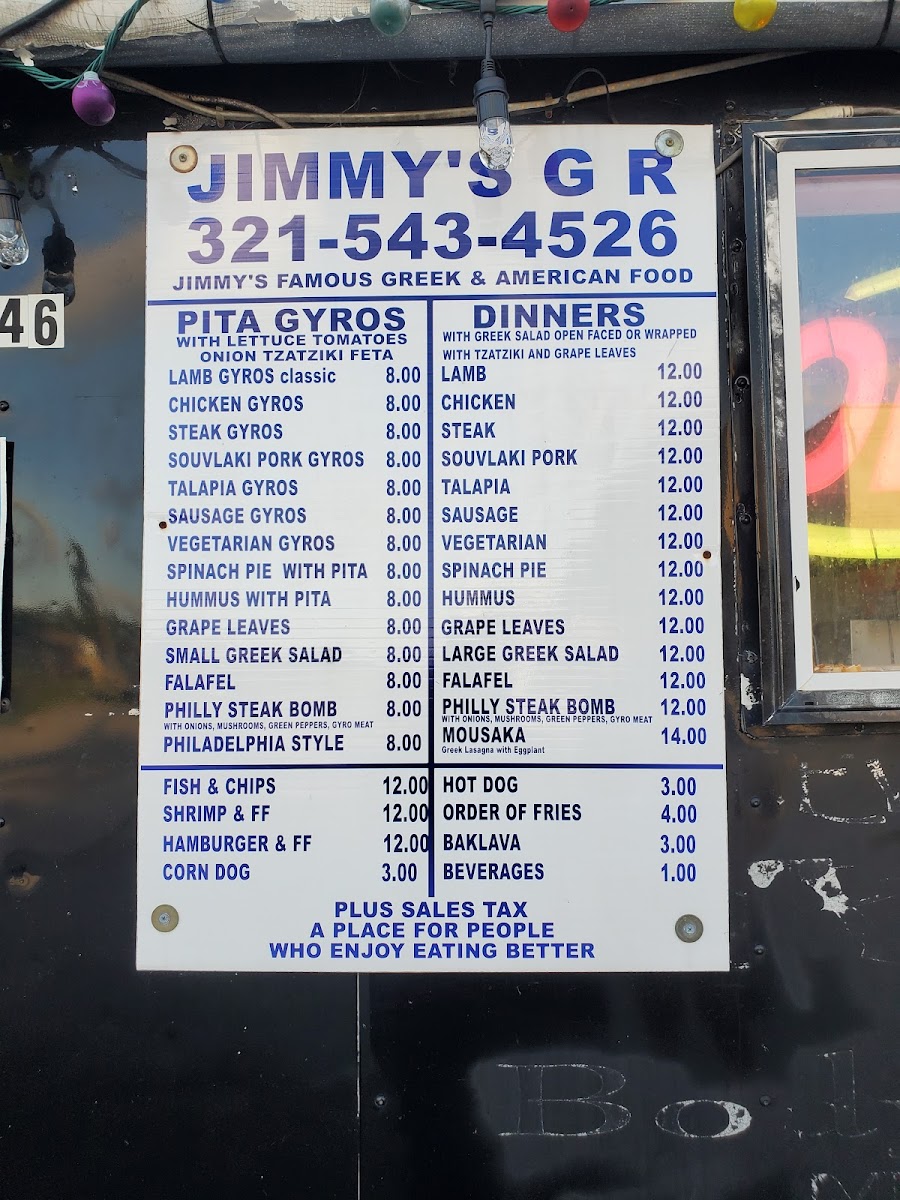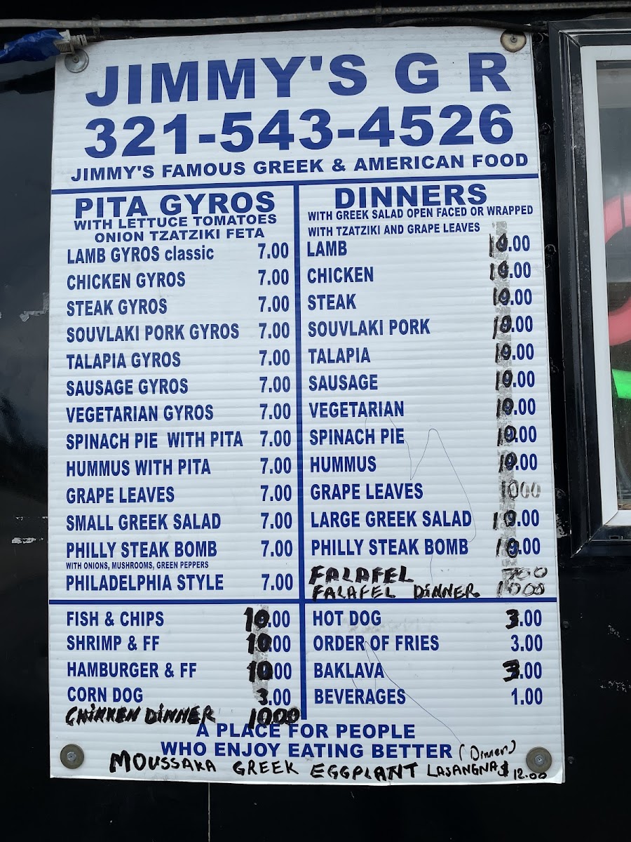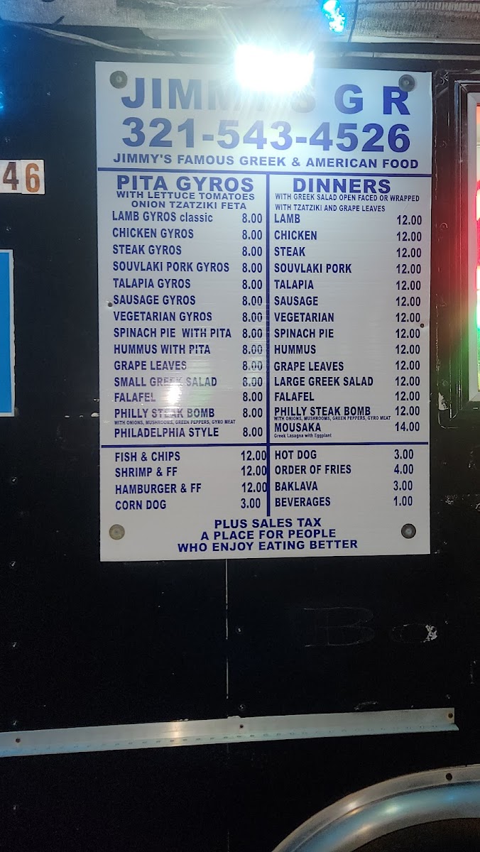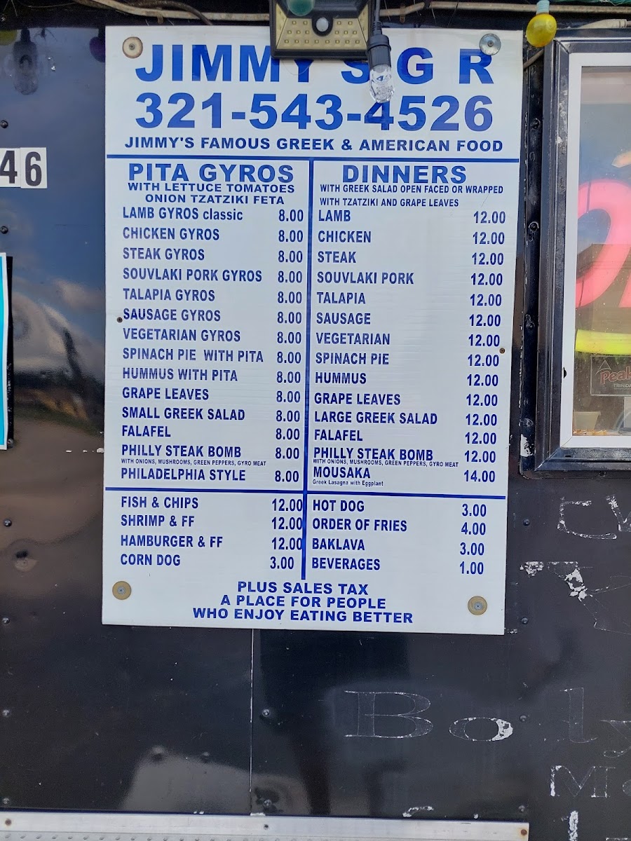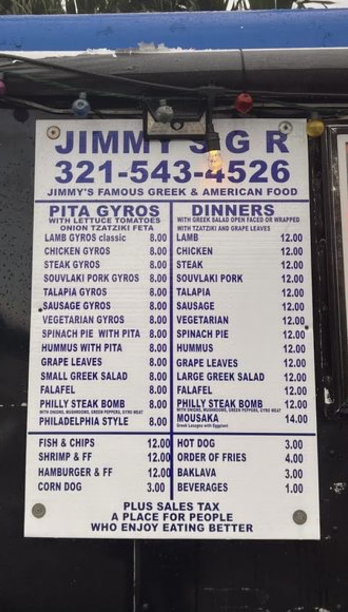 Jimmy's The Greek Flavor Menu